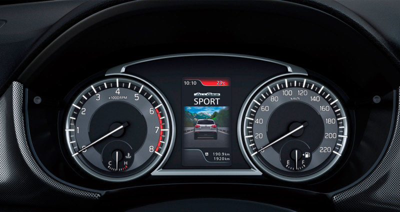 Приборный щиток представляет собой многофункциональный мультимедийный 4,2-дюймовый цветной дисплей. Он отражает множество функций: режимы ALLGRIP, G-Force, показатели работы двигателя и крутящий момент, а также данные об ускорении и торможении. В приборную панель встроены элегантные часы, а в центре расположен 7-дюймовый сенсорный дисплей с функциями управления аудиосистемой, беспроводным подключением телефона, навигацией, интеграцией смартфона с Apple CarPlay, Android Auto и MirrorLink.