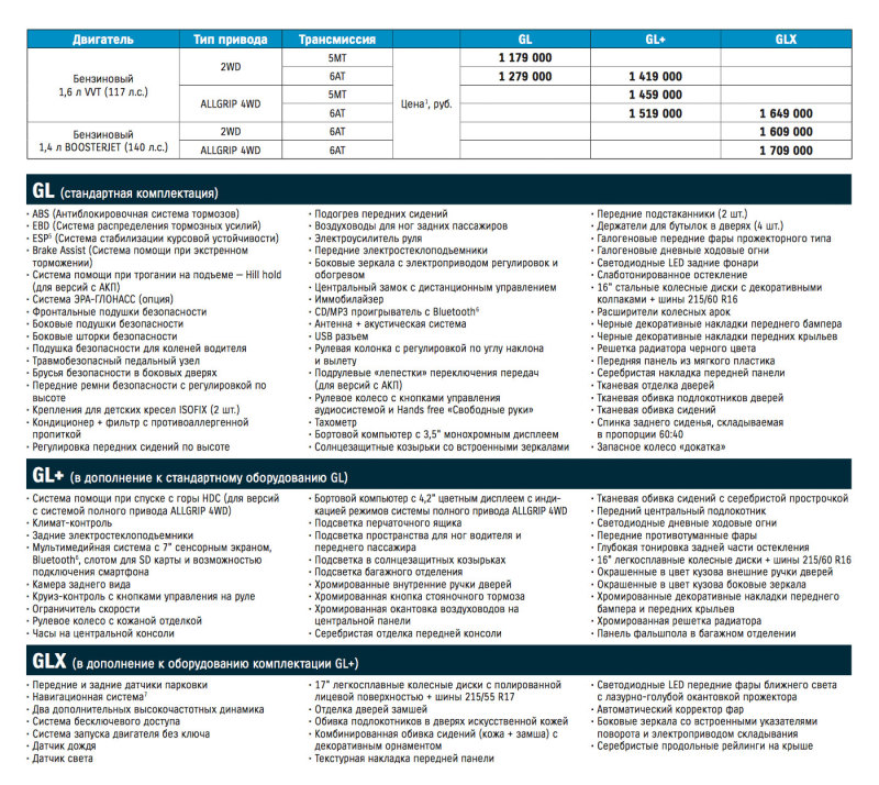 Модель имеет клиренс в 185 мм и систему полного привода ALLGRIP SELECT с 4 режимами.