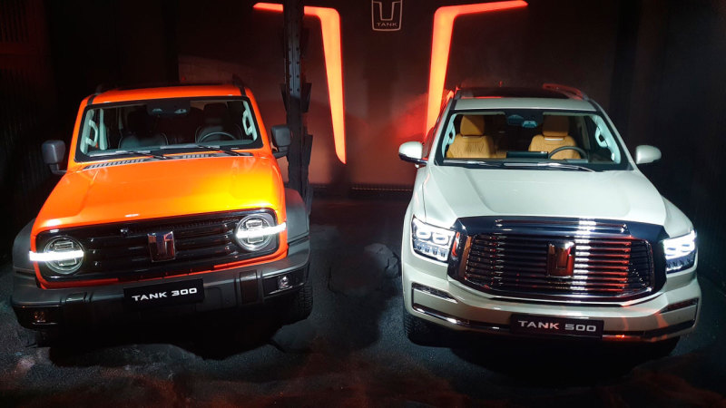 Это рамные внедорожники, среднеразмерный Tank 300 и полноразмерный Tank 500. Первые товарные автомобили появятся у дилеров в первом полугодии 2023 года.