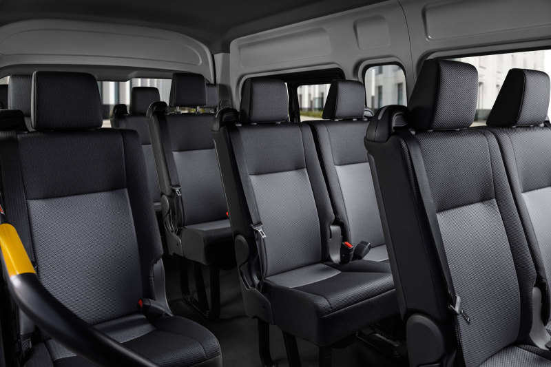 Кроме этого, впервые в истории, помимо вместительной 13-местной версии, Toyota Hiace предложит принципиально новое исполнение: 9-местный универсал повышенной комфортности, для управления которым достаточно водительских прав категории B.