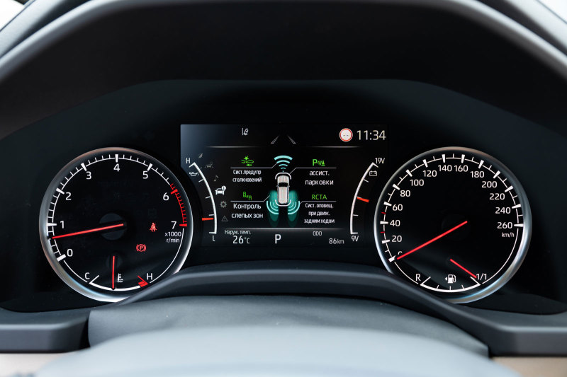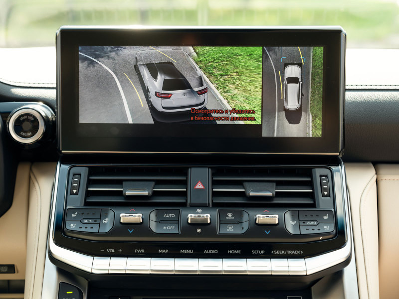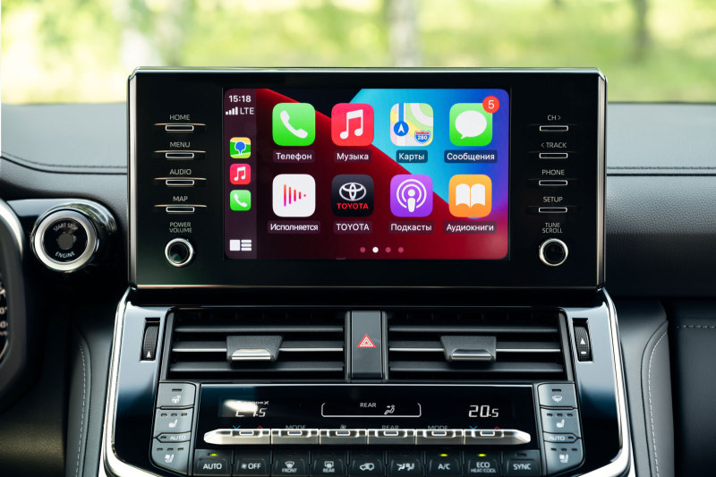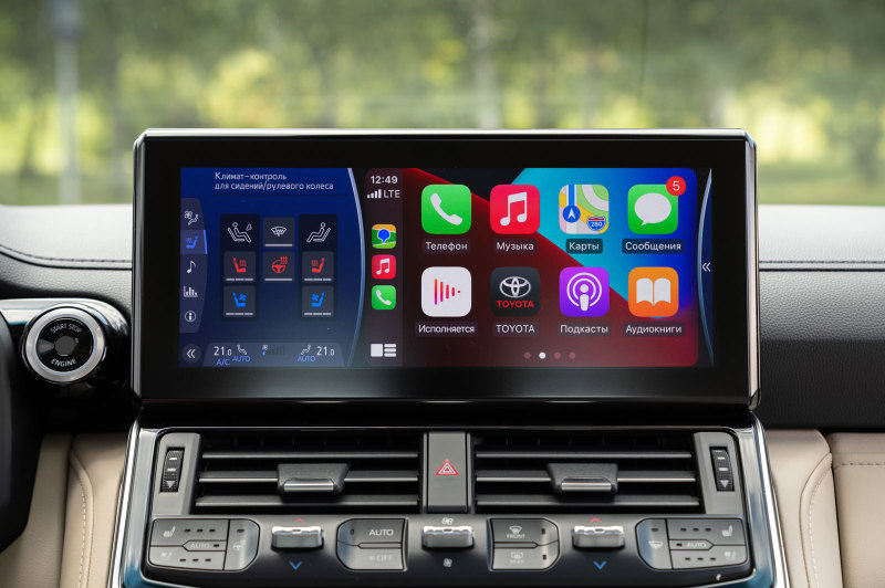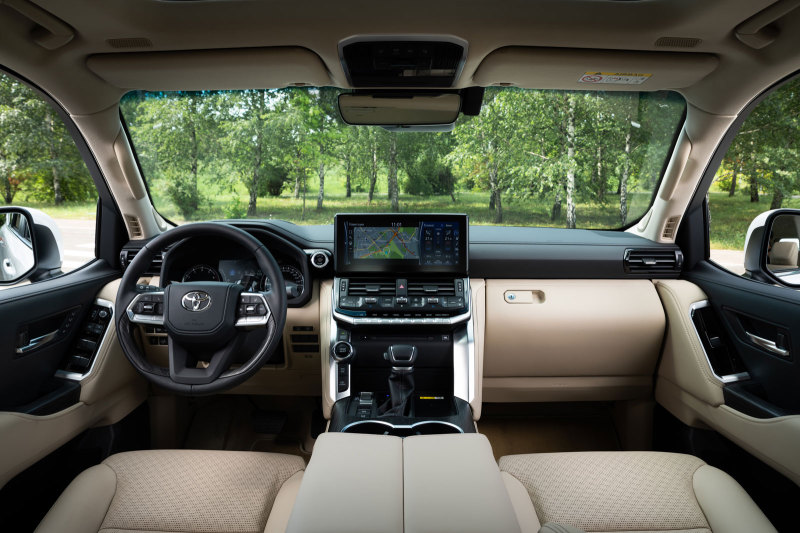 Toyota Land Cruiser 300 получил богатое оснащение уже в начальной версии. Автомобиль отличается светодиодными фарами ближнего и дальнего света рефлекторного типа с автоматической корректировкой угла наклона, функциями Toyota Connected Services с точкой доступа к интернету Wi-Fi, интеллектуальной системой запуска двигателя нажатием кнопки Smart Entry & Push Start со сканером отпечатка пальца. Информационно-развлекательная система автомобиля оснащена цветным дисплеем на центральной консоли и поддерживает Apple CarPlay и Android Auto.