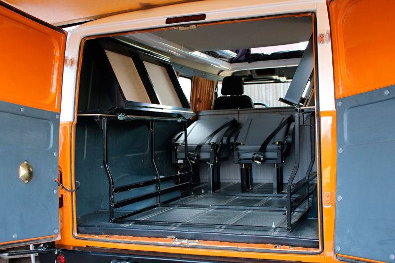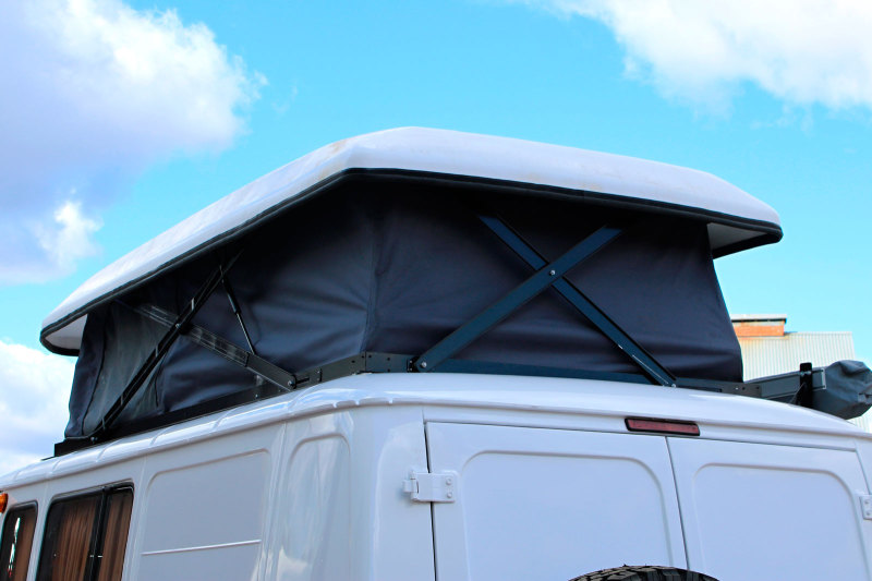 Список основных переделок начинает декорированная изнутри тканью дополнительная крыша из армированного стеклопластика с подъёмным механизмом, амортизаторами и фиксаторами в закрытом положении.