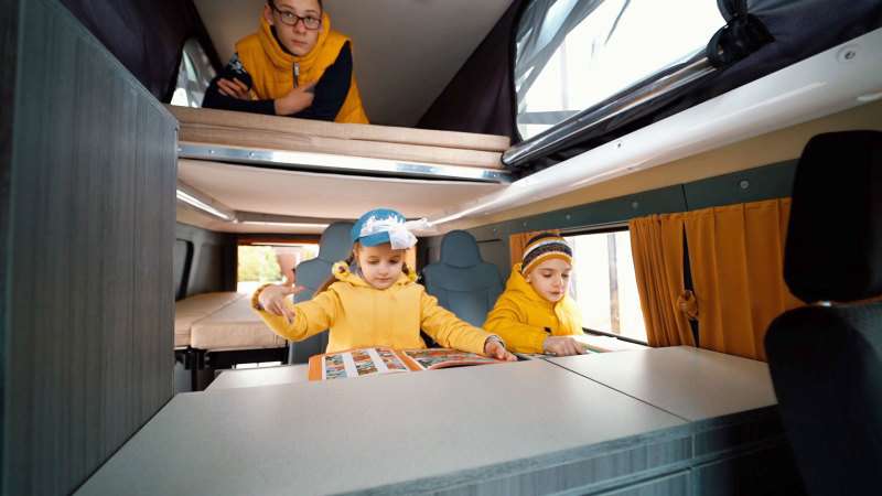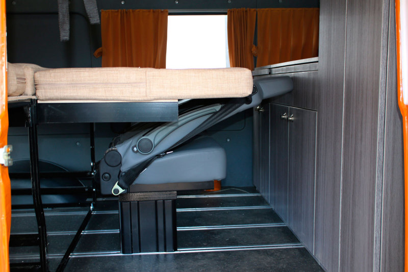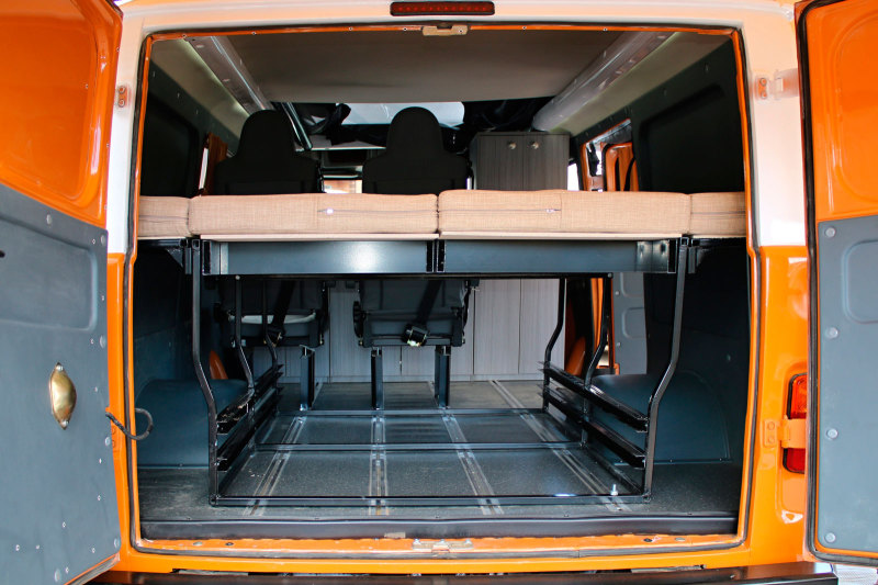 Ещё одно спальное место (1900х1460 мм) образуется внизу путем перевода в горизонтальное положение пары секций кровати, прикреплённых к боковым стенкам кузова, и складывания спинок двух пассажирских кресел. Конфигурация предусматривает также наличие платяного шкафа.
