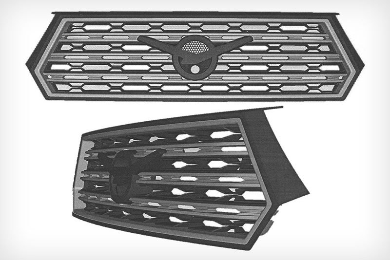 На решётке возможно заметить, что внизу логотипа марки расположено отверстие, возможно оно предназначено для камеры.