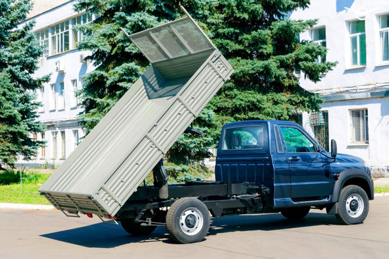 Такой "УАЗ Профи" с самосвальным кузовом предназначен для перевозки сыпучих грузов. Он имеет грузовую платформу длиной 3,09 метра и шириной 2,06 метра, которая рассчитана на перевозку 1,1 тонны груза.