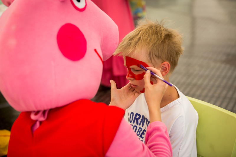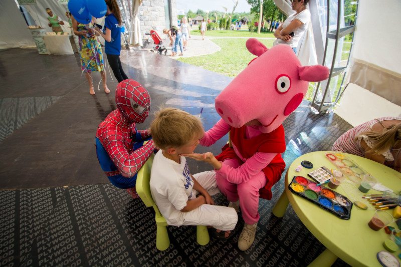 Маленьких гостей парка «SKAZKA» ждали фея и пират, человек паук и свинка Пеппа, которые проводили увлекательные конкурсы вместе с детьми и их родителями. Опытные детские аниматоры не давали скучать ни одному маленькому гостю.