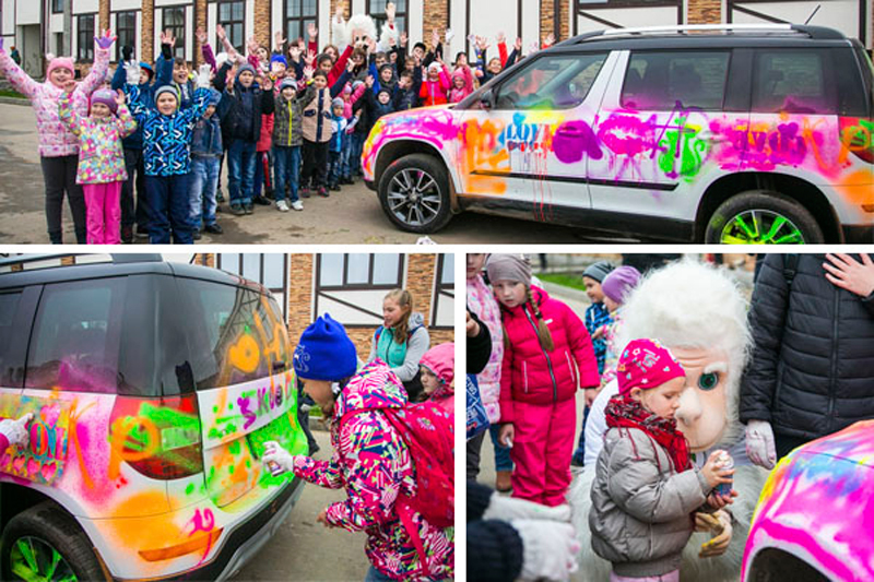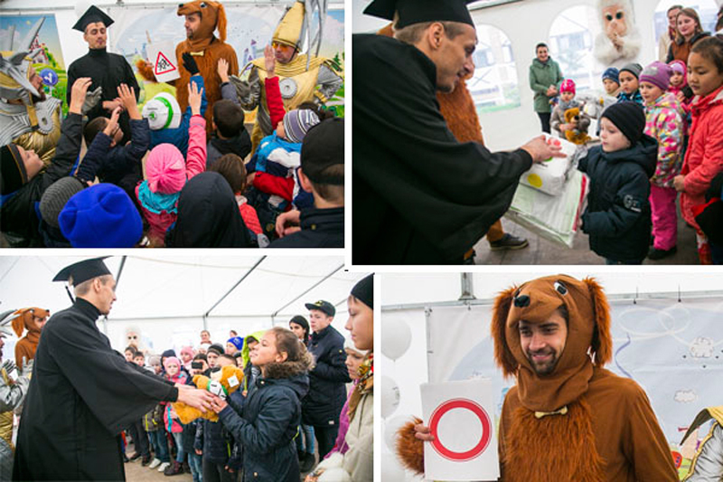 На интерактивном представлении вместе с Умником и Аликом дети изучали правила дорожного движения, а потом раскрашивали из баллончиков автомобиль SKODA Yeti, что вызвало невероятную бурю эмоций. В подарок участники получили пряники с изображением собаки Алика. Для детей был установлен батут «Изумрудный город». И, конечно, все в восторге были от снежного человека Йети. Дети не только получили полезные знания, но и сфотографировались с уже полюбившимися героями.