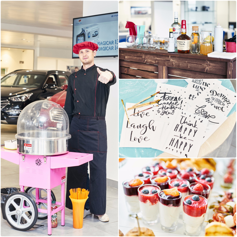 Для гостей мероприятия это был запоминающийся день, который они провели с удовольствием и в отличной компании. Гости смогли насладиться изысканными и вкуснейшими закусками и прохладительными напитками. Опытные бармены в течение праздника раскрывали свои секреты и с радостью обучали гостей всем тонкостям своей профессии. Все желающие смогли на время окунуться в мир высокой моды и подчеркнуть свой характер, создав собственную футболку в стиле каллиграфутуризма, ведь каллиграфия – искусство совершенства. Но кому захотелось создать свое собственное совершенство, попробовали себя в качестве дизайнера и создали свою собственную идеальную машину.