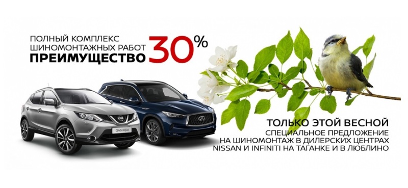 Для владельцев NISSAN и INFINITI дилерские центры на Таганке и в Люблино приготовили специальное предложение на шиномонтаж!