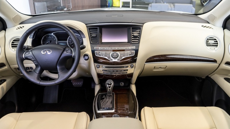 Оформление салона QX60 выдержано в строгом стиле. Мягкая кожа и вставки под дерево порадуют любителей натуральных материалов, а ключевым элементом дизайна, конечно, стал фирменный ориентированный на водителя кокпит с хромированными вставками.