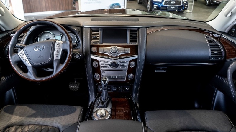 Интерьер INFINITI QX80 – это всегда традиционно роскошь и восторг. Присядьте в эргономичное водительское кресло, почувствуйте прикосновение натуральной кожи, проведите рукой по деревянным декоративным панелям и убедитесь, что этот автомобиль достоин стать Вашим!