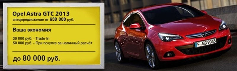 50 автомобилей Opel Astra GTC 2013 разных цветов и комплектаций на специальных условиях!