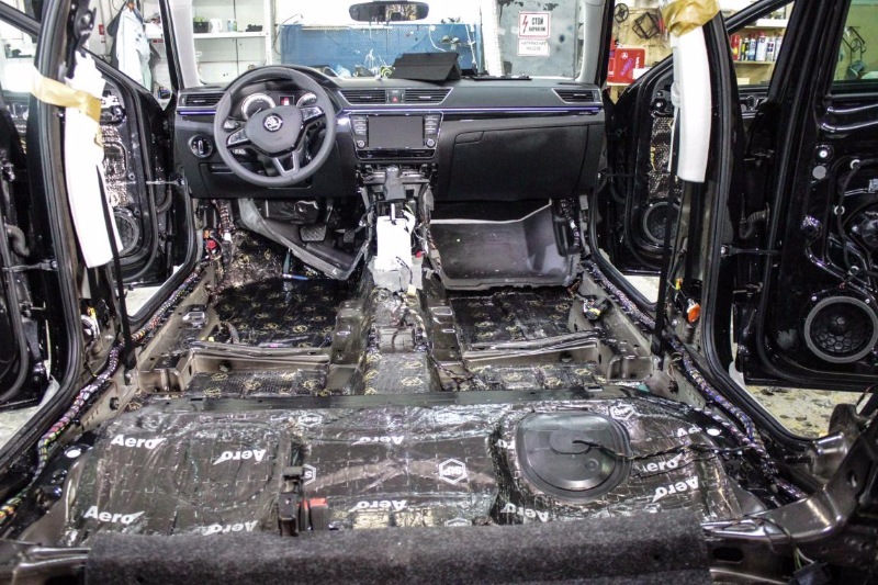Главная задача, которая стояла перед нашими специалистами – это необходимость устранить недочеты заводской звукоизоляции, которые выражены, прежде всего, шумными арками, дверями, днищем, крышей. Клиент желает получить премиальный уровень акустического комфорта внутри дорого выглядящего и едущего «чеха». Дополнительные работы по шумоизоляции необходимо провести с багажным отделением, которое в новом поколении стало еще больше (объем вырос до 625 л). Среди прочих целей – уплотнение пластиковых элементов интерьера, обшивок дверей.