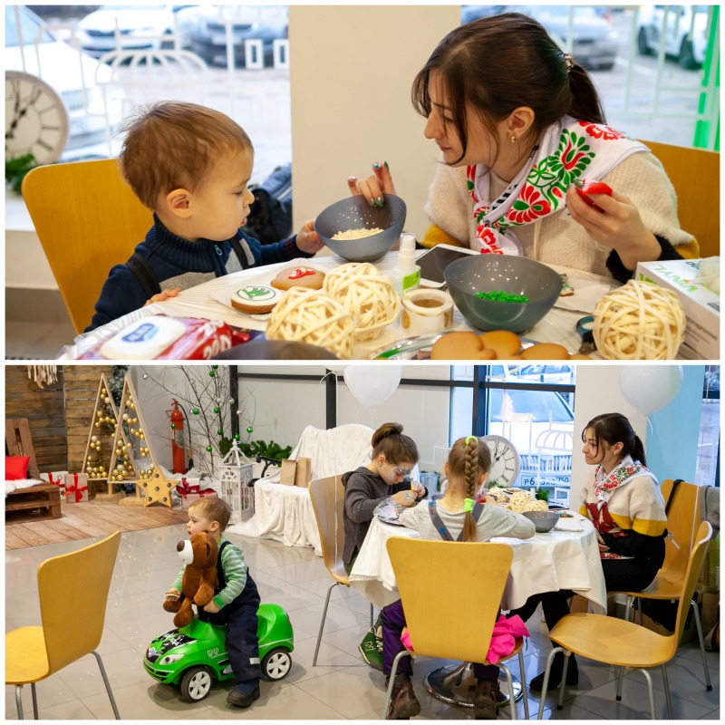 Этот выходной у детей выдался насыщенным: фотографии на память в тематической фотозоне, яркое раскрашивание аквагримом, украшение елки.