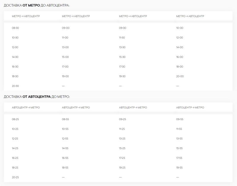 Новое место встречи клиентов — м. Сходненская, выход №3. Выход из первого вагона метро, за стеклянными дверьми направо и выход в город налево. Рядом с остановкой автобуса. К этому месту каждые полчаса подъезжает автомобиль ?KODA KODIAQ белого цвета. К сожалению, парковаться у метро практически нет возможности, поэтому просьба не опаздывать к указанному времени, а при подъезде автомобиля к метро сразу выходить к нему навстречу.