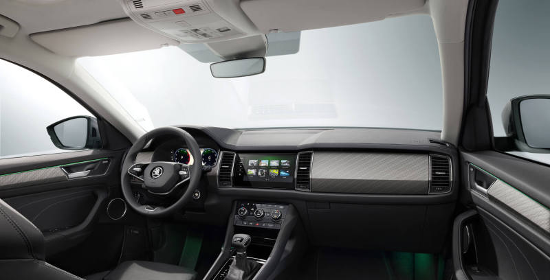 Обновленный KODIAQ приобрел эмоциональный и уверенный образ, а также улучшенные аэродинамические показатели. Приподнятый рельефный капот, новая фирменная решетка радиатора, установленная более вертикально, чем раньше, а также новые легкосплавные колесные диски диаметром до 20 дюймов придают автомобилю динамичный облик. Линии фар и задних фонарей стали более зауженными. Впервые для KODIAQ опционально предлагаются инновационные полностью светодиодные матричные фары.