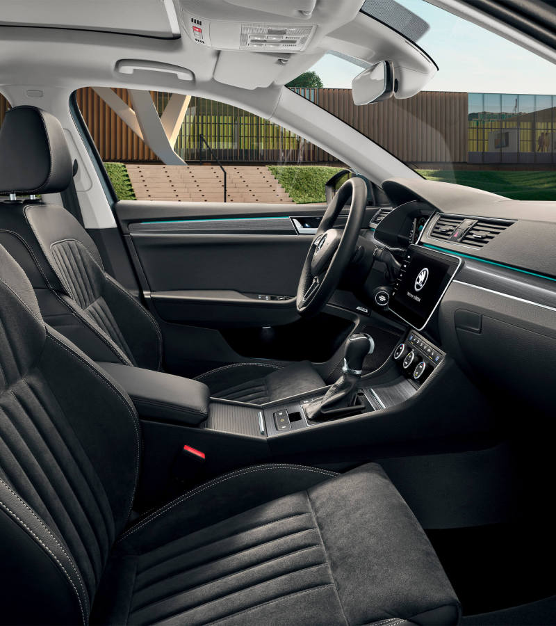 В интерьере обновленного S?KODA SUPERB появились новые варианты обивки и декоративные элементы, а при желании клиента потолок может быть отделан материалом Alcantara. Уже в стандартной комплектации присутствует система бесключевого запуска KESSY GO. Помимо этого, улучшились традиционные для марки решения по хранению Ваших предметов.