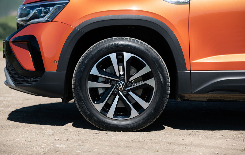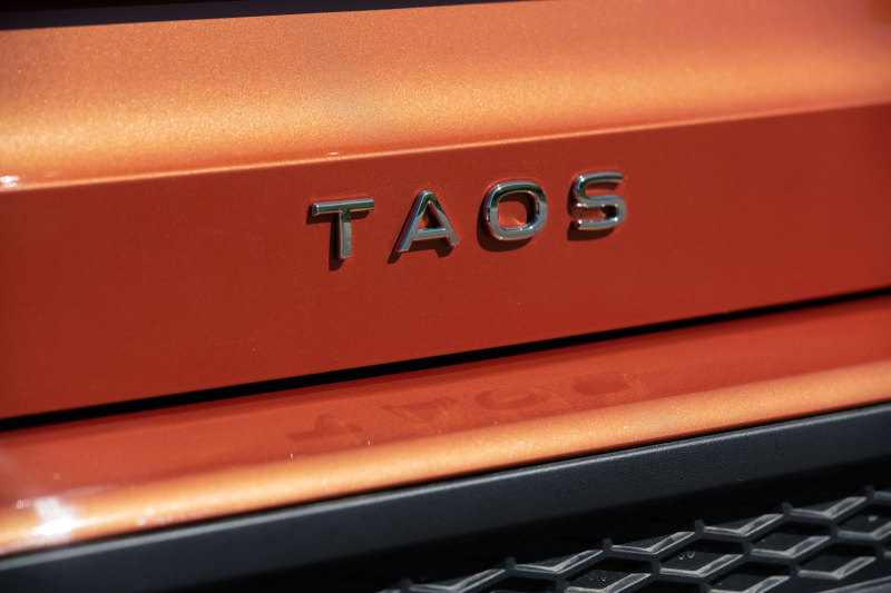 - черные корпуса боковых зеркал заднего вид с названием модели Taos на передних крыльях