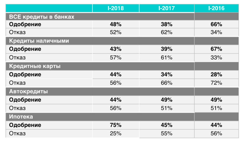 Исследование частоты отказов по кредитам аналитики ОКБ сделали на основе выборки из информационной части кредитной истории, которую передают в Бюро более 600 кредиторов.