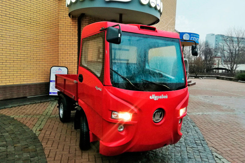 Теперь в Туле решили воскресить старый бренд и в прошлом году разработали новый "Муравей". Теперь это не мотороллер, а компактный минигрузовик на электрическом ходу. У машины всё "по взрослому", есть четыре колеса и закрытая двухместная кабина из стеклопластика, а также грузовая платформа. Заявленная грузоподъёмность машины составляет одну тонну.