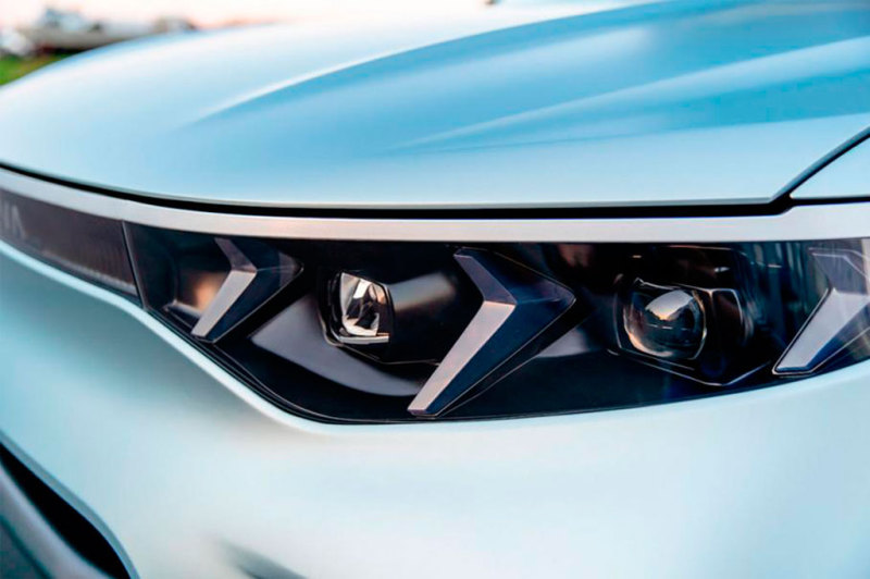 E-NEVA представляет собой компактный кроссовер длинной не более 4,5 метра. У него зауженная головная оптика на светодиодах, массиный передний бампер с воздухозаборниками по бокам.