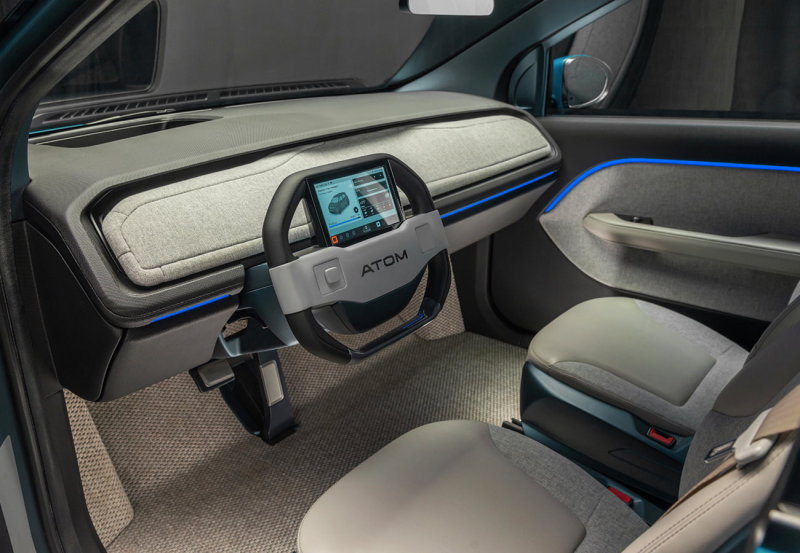 Модель "Атом" в виде прототипа показали в мае текущего года, Это компактный электрический хэтчбек с кузовом длиной четыре метра.
