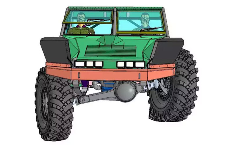"Тактический пикап АГ34" имеет систему централизованной подкачки колёс на ходу.