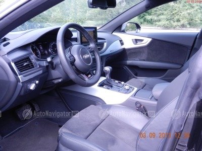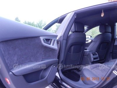 В салоне роскошно, бесшумно. Дорогая акустика в количестве 12 штук и мощный сабвуфер в нише запасного колеса звучат идеально и смогут порадовать искушённого меломана. Багажный отсек ну просто большой, где без труда разместится габаритный груз. Дверь багажника открывается простым движением ноги вдоль заднего бампера, а закрывается нажатием кнопки на ней. В этом авто на кругом приятные и функциональные фишки: проекция информации на стекло, парктроники по кругу с графикой на выдвижном цветном дисплее, корректная навигация, система стоп-старт (при желании можно отключить), без ключевой запуск двигателя, доступ в салон от прикосновения к ручкам двери (такое же и запирание), приятное освещение зоны ног и облицовки дверей, обогрев сидений, климат-контроль, салон в тёмных тонах и обшит кожа+алькантара, вставки в панели и дверях из не полированного алюминия, накладки на порогах, агрессивный спортивный обвес снаружи и, соответственно, упакован внутри сидениями с перфорацией и мультифункциональным рулём.