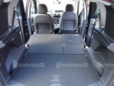 В салоне простор трансформации. Такого я еще не встречал за свою практику езды на седанах. 1400л дают о себе знать в положительном смысле. Задний диван ездит вперед и назад раздельно в пропорции 60: 40 и меняет угол наклона! Рослый водитель отодвинет кресло водителя до упора назад и еще сядет на задний диван, не упершись коленями в водительское кресло. Руль регулируется в двух положениях. Обзор и высокая посадка приятно удивляют. Зеркала позволяют запарковать машину без оглядки назад.