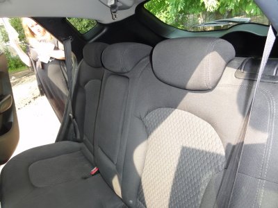 Едем дальше. Руль - гидроусилитель со всеми удобствами тут же: круиз-контроль, управление музычкой. Удобный в обхвате руль, зачет, пять баллов. Эргономика... Такое впечатление, что прямо под меня, далекий корейский конструктор все это сделал - идеальные кресла - анатомические, мягкие, регулируются хоть и механически в моем случае, но зато и вдоль, и поперек. Удобный правый подлокотник, он же второй бардачок (глубокий и вместительный), левую же руку удобно пристраиваем на двери - два варианта куда можете поставить локоть. Вообщем, идеально удобно сидеть и управлять. Рулевая колонка также настраивается под параметры водителя. На заднем сидении можно жигу танцевать - места очень много, всем хватает. Мы с друзьями (был опыт) - впятером на заднем помещались, как в том анекдоте, а еще и мужик с гармошкой :-) Будете довольны - удобно и вместительно. Еще один приятный плюс - бар в подлокотнике на заднем сидении, который можно выдвигать или прятать, в зависимости от того, сколько людей на заднем сидении находятся. Из удобств еще вспомним несколько розеток для зарядных устройств - на заднем сидении и на водительском. Есть также Usb-приемник, прикуриватель, держатель документов, косметические зеркала на двух передних сидениях, очковница. Порадуют даже козырьки от солнца, которые открываются и поворачиваются в любом направлении так, что можете закрываться от солнца даже сбоку. Вообщем, настолько все до мелочей продумано, что даже плакать хочется. От счастья, разумеется…