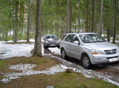 Подвеска у Соренто крепкая. Развал–схождение - все в норме. Проверял у друга в "ХХХХХХ" центре. Да это видно по покрышкам - изнашиваются ровно. Совет: переднее давление - 2.4, задние - 2.3.