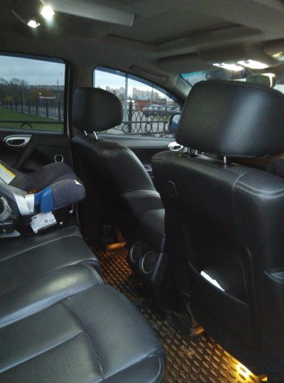 Второй ряд сидений. Там очень просторно – задний диван имеет салазки (ни в ИксТрейле ни в Спортейдже такого нет). Очень удобный задний подлокотник, если его опустить, то открывается доступ к огромному багажнику. Посадка на задний диван высокая, может кому то и не понравится, но мне нравится – с заднего дивана отлично просматривается лобовое стекло, детям понравится. Жаль что без подогреву. На потолке салфетница – в которую при желании можно вкрячить монитор (кто то выкладывал, найти не могу). Подсветка сзади с зеркалами тоже присутствует.