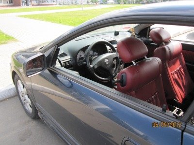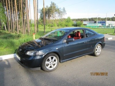 Итак, Опель Астра G Coupe Bertone 1, 8 бензин, темно-синего цвета, с красным кожаным салоном, новым комплектом шин Pirelli, на R16 Опелевских дисках, новой АКБ. К счастью, попался совершенно не укатанный экземпляр с полной сервисной историей в Голландии и лишь год отколесивший на просторах Беларуси. При покупке данной модели можно быть уверенным, что авто не работало в такси и на ней не ездили дачники с мешками картошки. Единственный риск — спаленное сцепление или аварийное прошлое.
