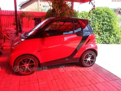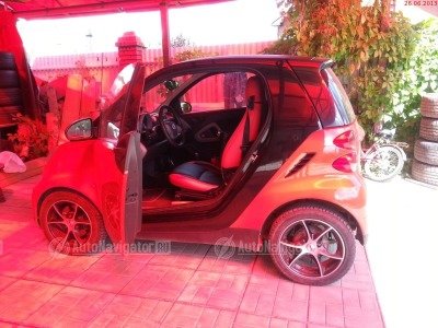 Smart - не спортивный автомобиль, но небольшие габариты и узкая колёсная база позволяют в пробках легко маневрировать. К тому же сидения-капли и сочетание красного и чёрного в интерьере придают уверенности владельцу, а достаточно яркий цвет делает машину заметной на дороге.