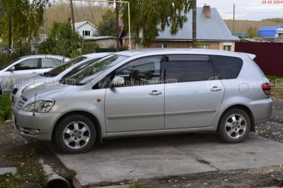 Тойота Ипсум, выпуск октябрь 2003 года, цвет – серебристый, комплектация i, двигатель 2AZ-FE, объём 2, 4 л, 160 л/с, АКПП 4 передачи, бежевый тканевый салон, 7 мест, климат- контроль для передних пассажиров, кондиционер для задних (но лучше была бы печка), музыка 2DIN Mystery-MDD7700 ставилась в России (USB, DVD, DivX, TV, слот для SD, радио), ближний – ксенон, дальний – обычный, складывающиеся зеркала заднего вида (плохо, что без обогрева), стеклоподъёмники электрические, все авто. Подвеска не регулируемая. Летняя резина Bridgestone 205/65/R15, зимняя Cleber («липучка») тех же размеров. Машина в России с 2007 года. Брали её в конце 2008 года с пробегом 50000, сейчас 65000.