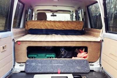 Боковые пороги как и положено усилились из 3-х дюймовой трубы и как вкладыш встали внутрь родные порожки. Как на тепловозе присутствует пневмосигнал, в дальнейшем пороги будут иметь дополнительную функцию ресивера. В спартанском салоне т. к автомобиль больше предназначен для жарких стран установлена вибро-шумо изоляция, поменяно водительское сидение на RECARO более удобное на длительные поездки. Музыка тоже стала другой, появились динамики в дверях автомобиля.