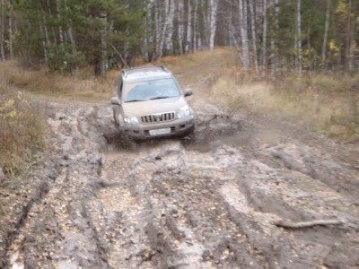 В грязи сильно не успел поездить, но небольшая поездка в Парабель, как я и ожидал, немного показала вездеходность автомобиля. В своё время я сам за рулём много ездил на УАЗе по рабочим вопросам в глухих местах и считаю, что УАЗ - очень хороший автомобиль для бездорожья. Так вот на Prado я чувствую себя также уверенно как на УАЗике, но только жалко бить такой красивый автомобиль. Сейчас по снегу Prado идёт по сугробам пока не встретится с жёсткими перемётами, где садится на мосты. Немного поэксперементировал и пришёл к выводу, что как только надо выехать на снежную целину, то необходимо вклкчить межосевую блокировку (отключающую систему курсовой устойчивости). А иначе на очередном глубоком сугробе при пробуксовке колёс подключается электроника и обороты двигателя резко падают, скорость снижается и автомобиль основательно проваливается в снег.