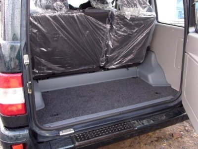 Итак, после беглого осмотра: багажное отделение реально меньше обычного Патриота (далее по тексту Обычного), а учитывая, что дверной проём багажного отделения не имеет борта и заподлицо с полом, то при открытии двери вы рискуете вывалить багаж на землю. Загрузка так же не удобна, ту же надувную лодку с мотором, палатку и рюкзаки надо закидывать из салона.